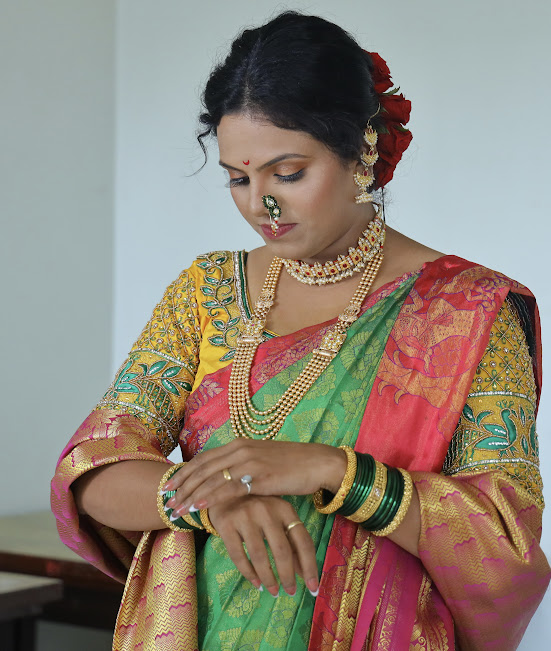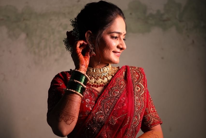 "The makeup was natural, fresh, and looked so beautiful in all our pictures. Supriya tai even helped with my jewelry and hair styling. She’s the best in Latur!"