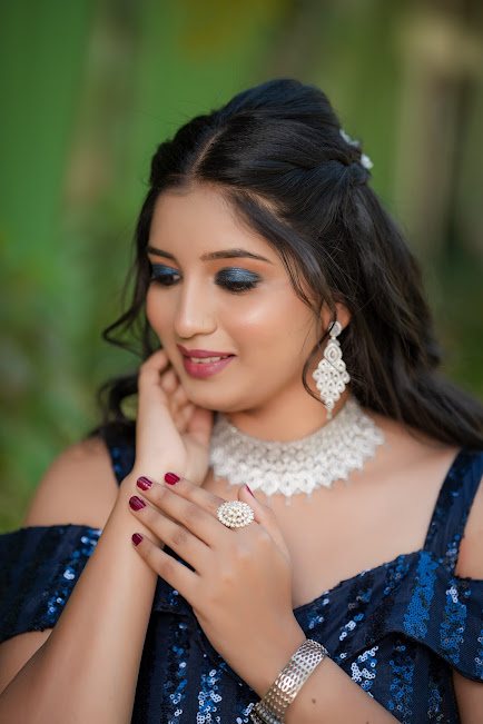 💄 Service Includes:Dewy/Natural Makeup Look (or customized as per theme)HD / Waterproof Makeup for outdoor shootsSoft yet defined eye makeup for dreamy portraitsLong-lasting base with subtle contouring & glowHair Styling (curls, waves, buns as per outfit/style)Light Jewelry & Dupatta Setting (if required)