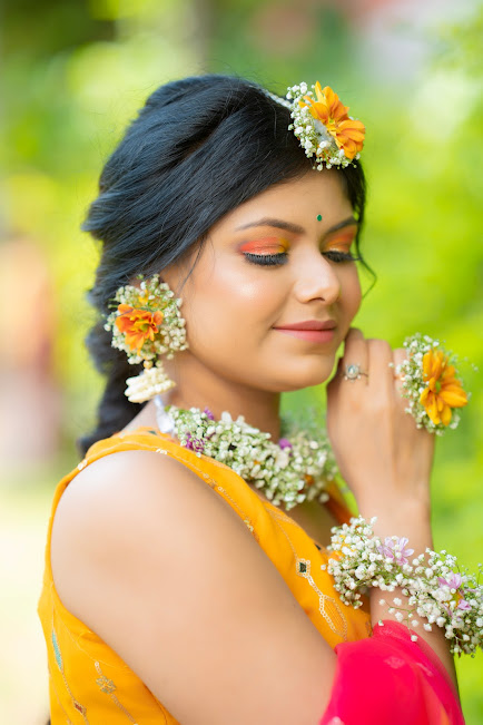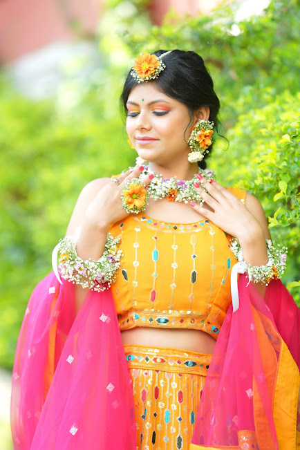 Glow naturally with a fresh, floral, and flawless Haldi look!